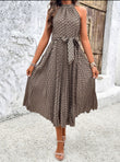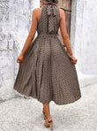 Women's Patterned Sleeveless Halterneck Midi Dress with Waist Tie S-XL.
