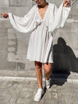 Embrace your inner fashionista and step out in confidence with our Woven Plunge Skater Mini Dress. Its flattering silhouette, plunging neckline, and flared skirt make it a go-to option for any fashion-forward individual.