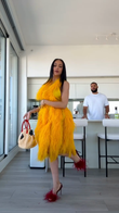 Yellow Feather - Trimmed Sleeveless Midi Dress