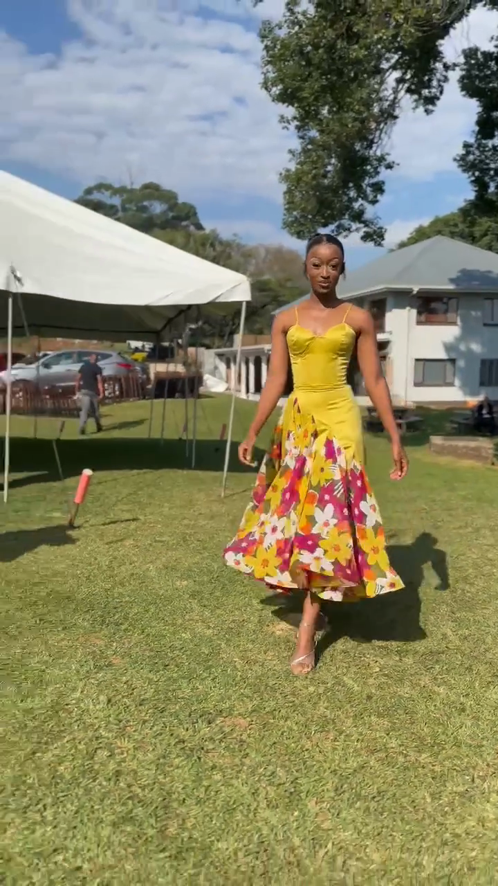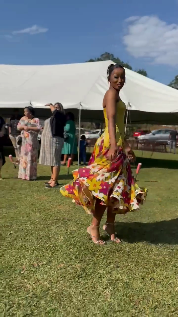 Yellow Floral - Print Midi Dress