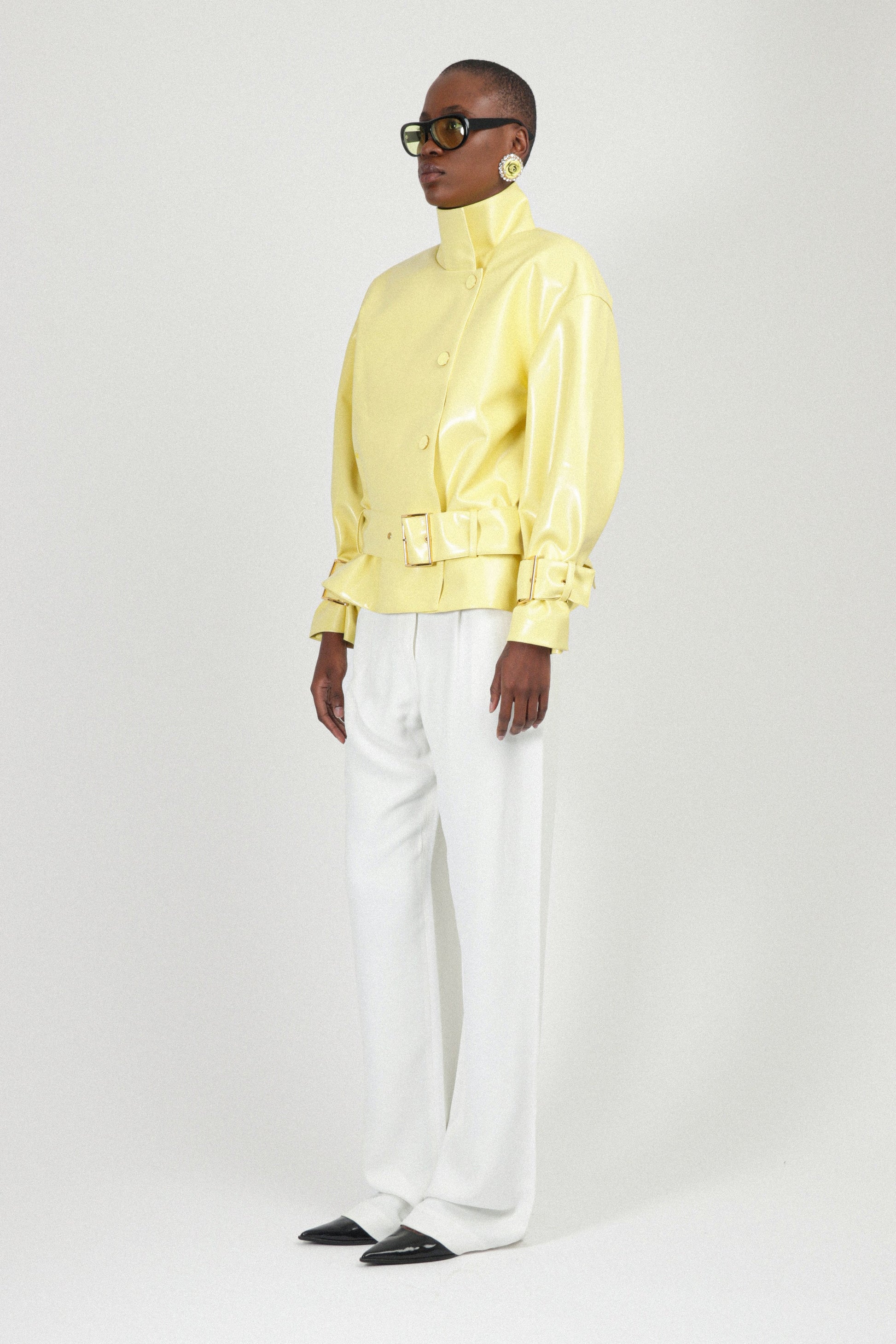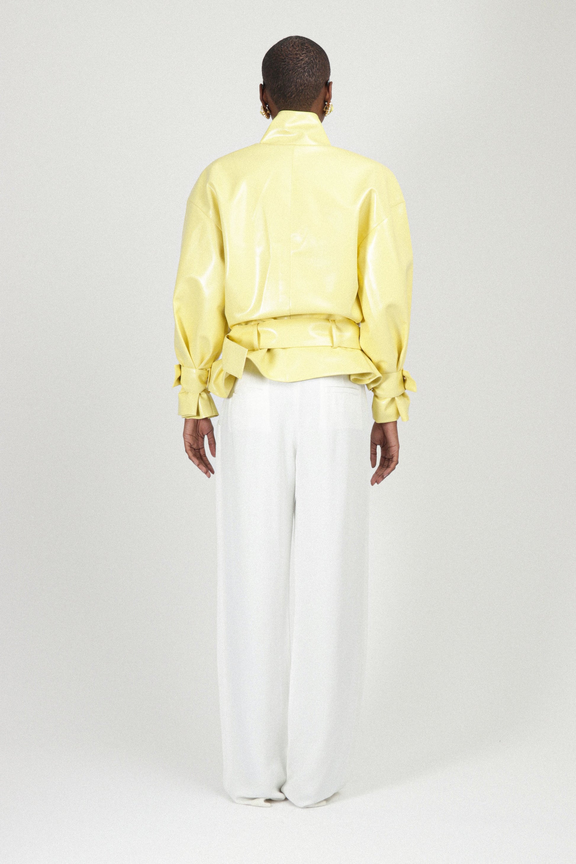 Yellow Patent Leather Belted Jacket