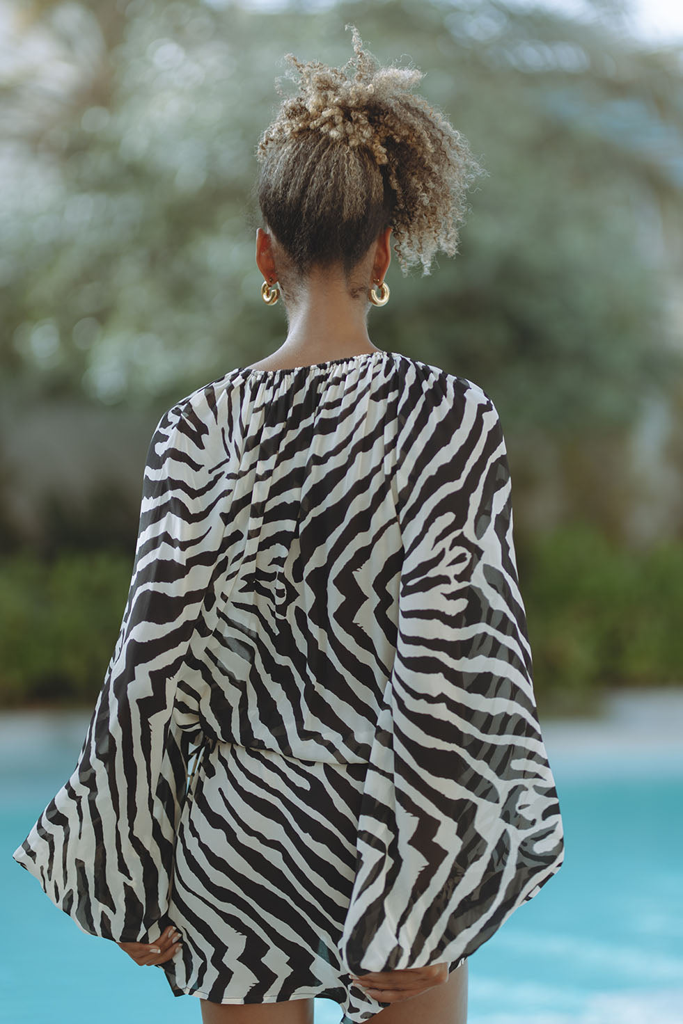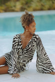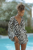 Zebra Print Deep V Neck Silk Mini Dresses