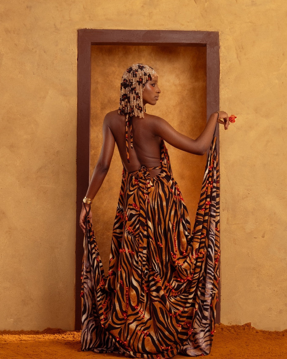 Zebra Print Red Embellished Suspender Dress